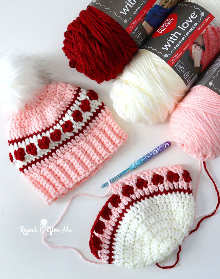 Crochet Hearts In a Row Striped Hat by Repeat Crafter Me