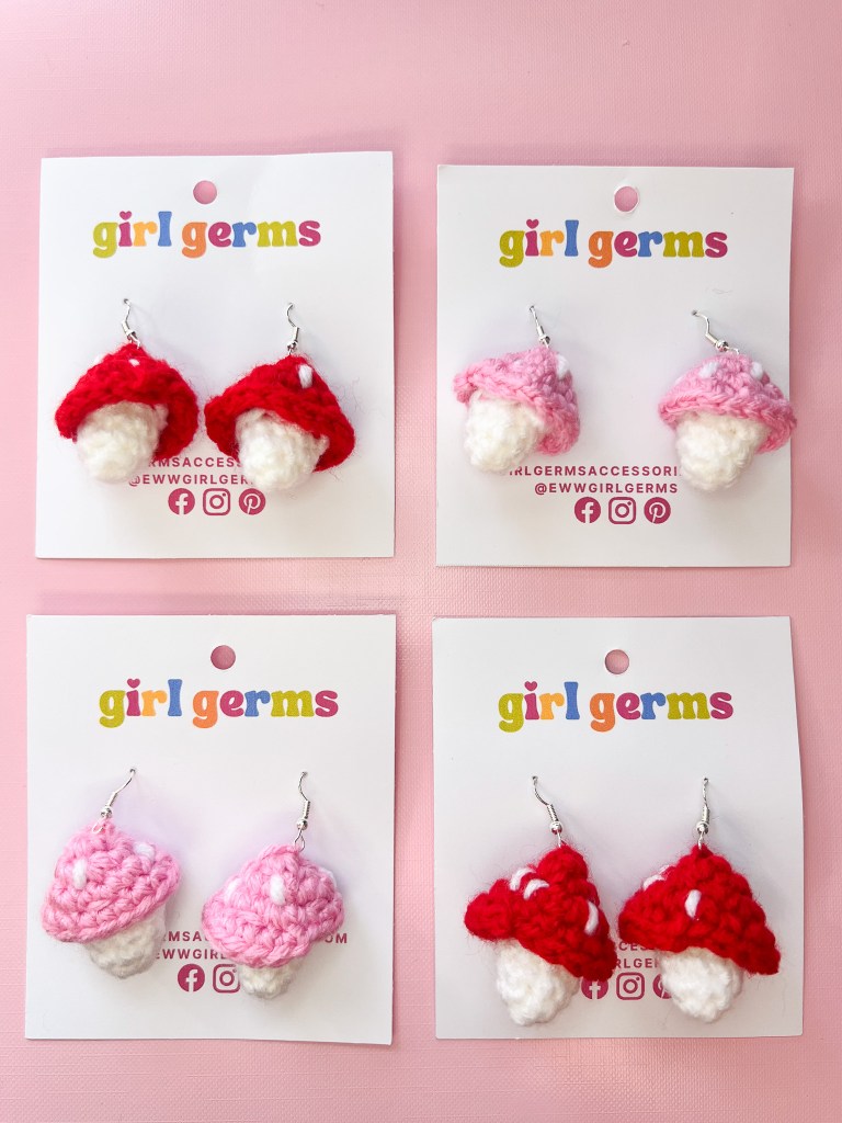 If you can single crochet in the round, you can make these lil’ mushrooms — seriously. With just 8 quick rows and a sprinkle of stuffing, they come together fast and are beginner-friendly without being boring. While I turned mine into earrings, they’d also make adorable mushroom keychains, plushie pals if you size up the yarn, or sweet little accents on whatever you’re stitching up next. The possibilities for these little guys are endless!